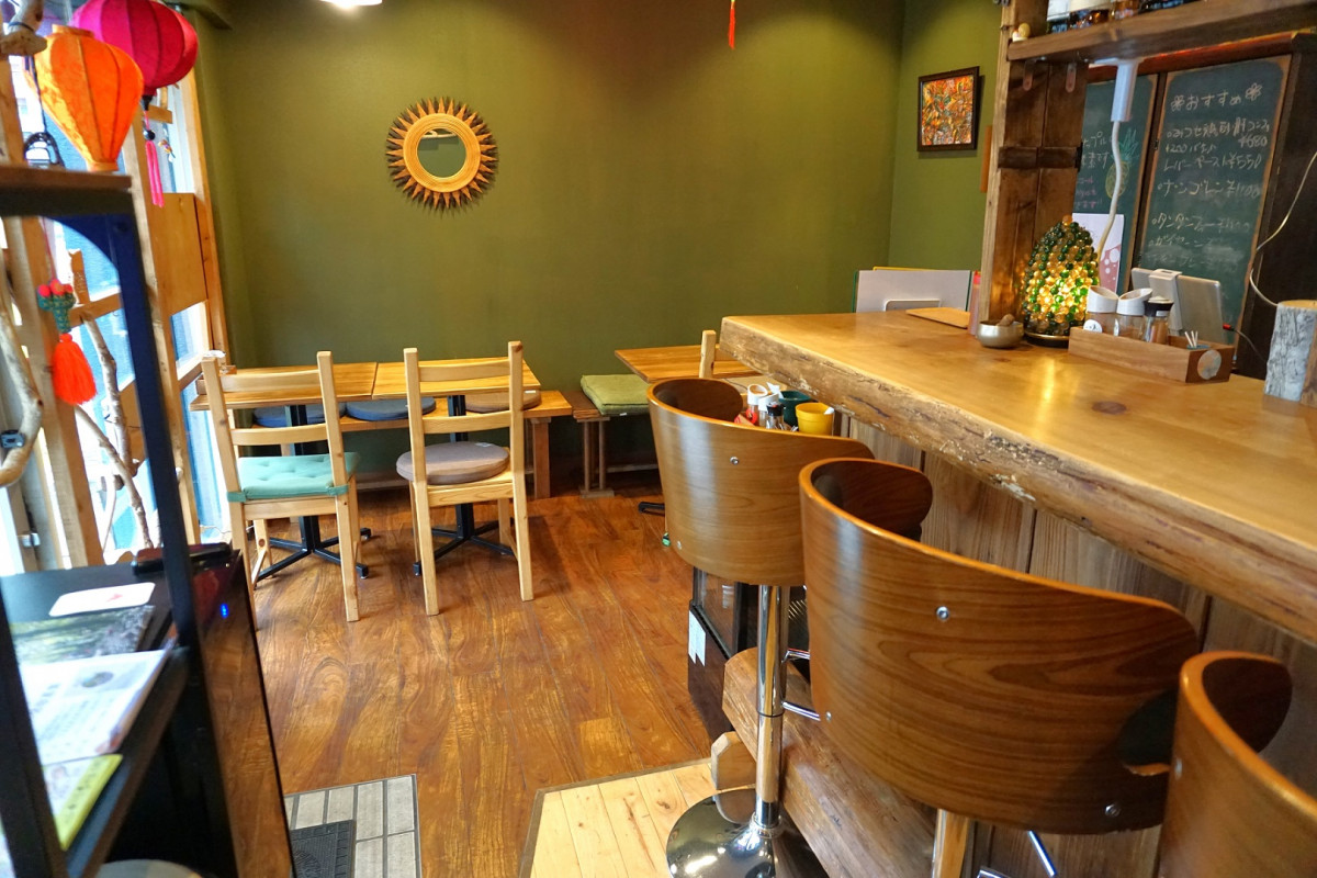 カウンター席へは1段の段差があります