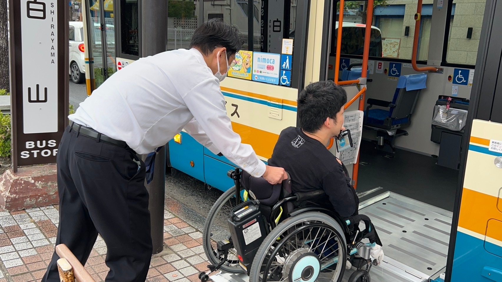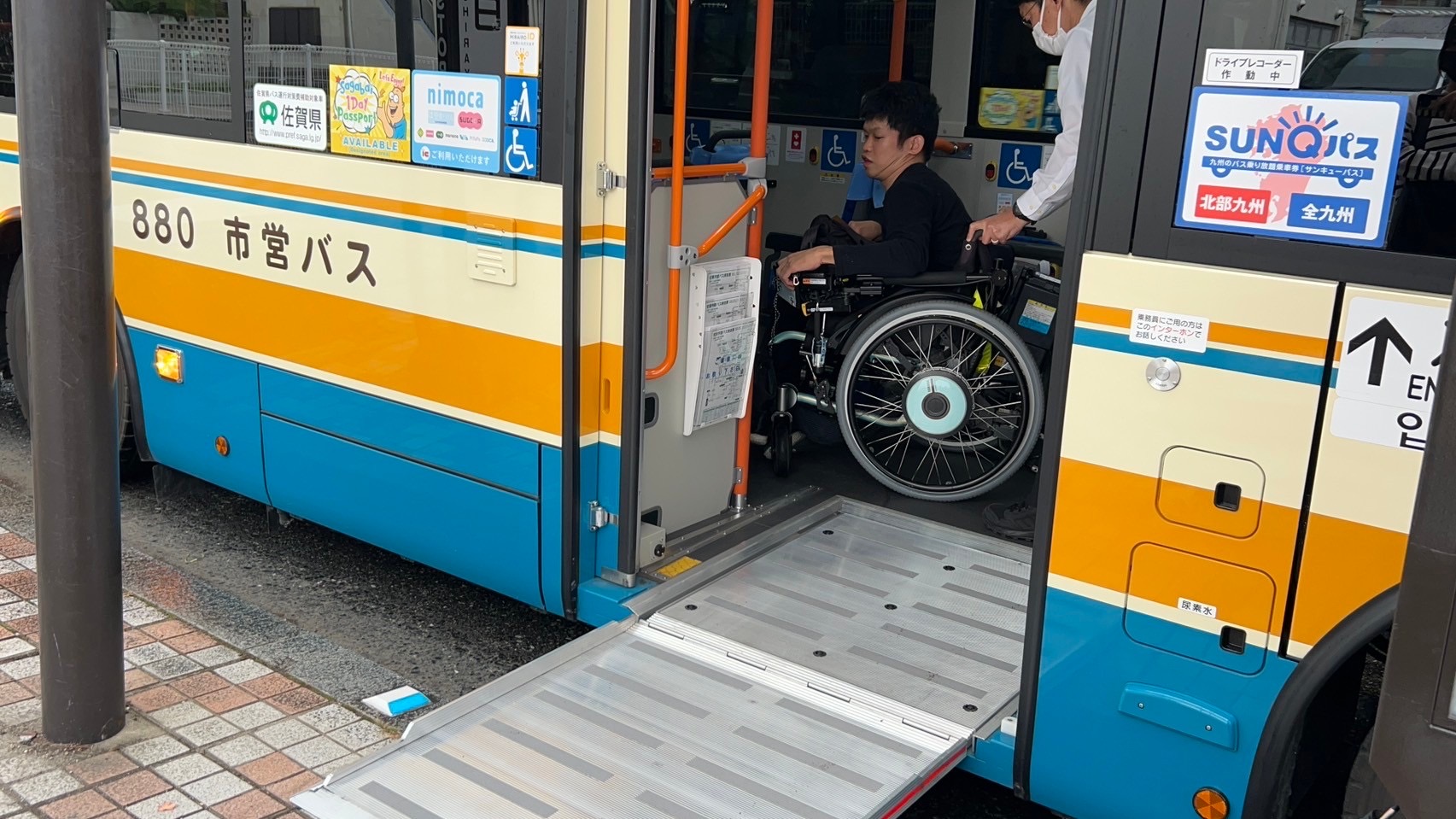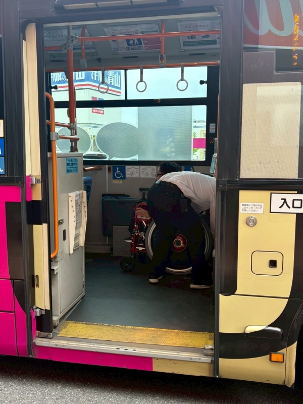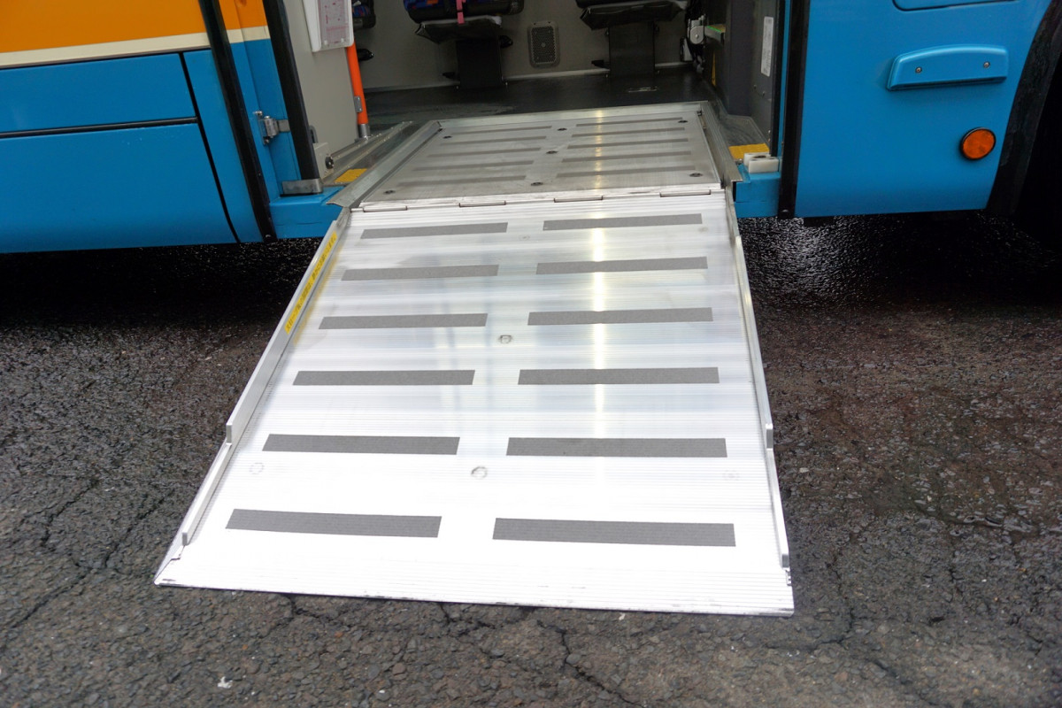 スロープ板を設置してあるため、車いすやベビーカー、シルバーカーのままで乗降できるようになっています。