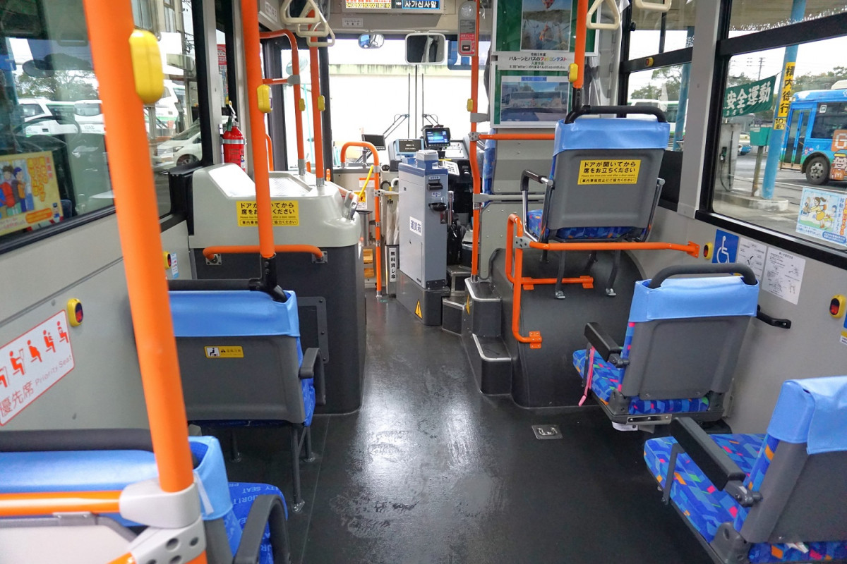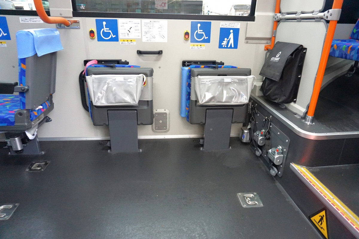 ノンステップバスとは、超低床の床面にしたことにより乗降ステップがなく、乗り降りしやすい構造のバスのことです。