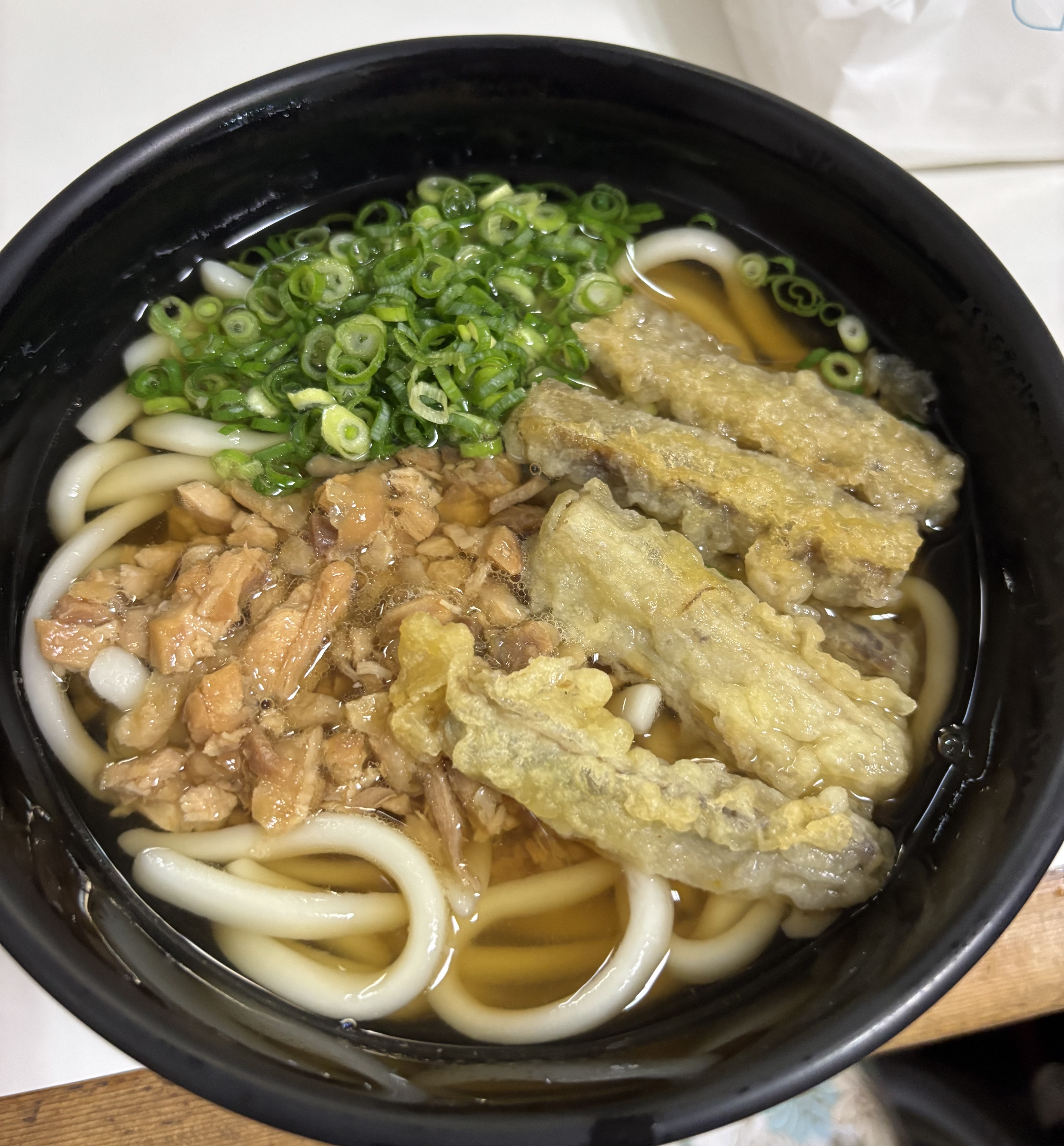 人気の「かしわうどん」は煮干し、昆布、二種類の醤油、酒、味醂でつくった薄味のスープに、甘辛く炊いた鶏肉の強い風味が味の奥行きを増します。