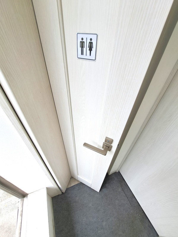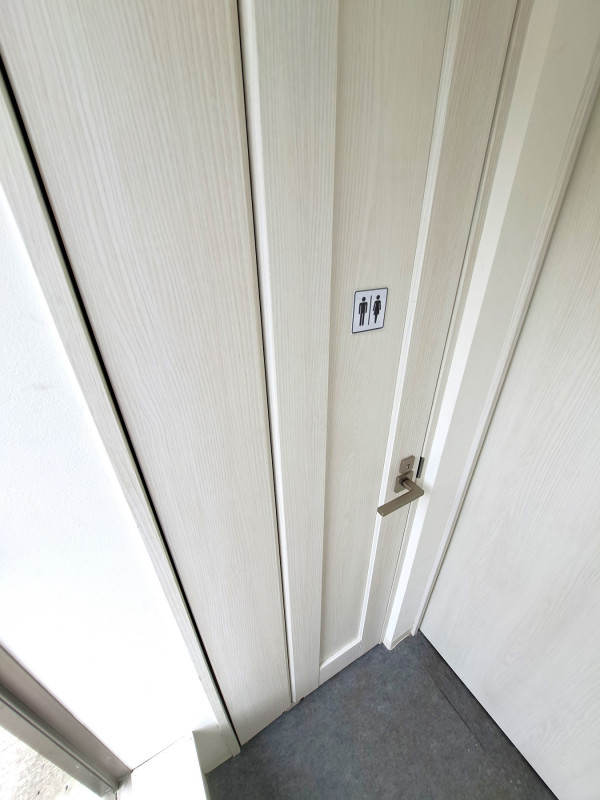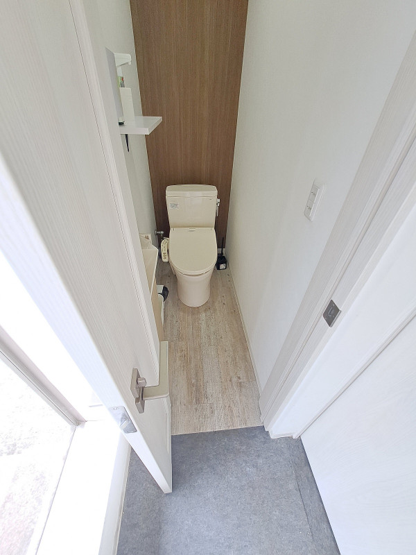 トイレの出入口は外にあります。外と内に段差がございますので、お写真でご確認ください。