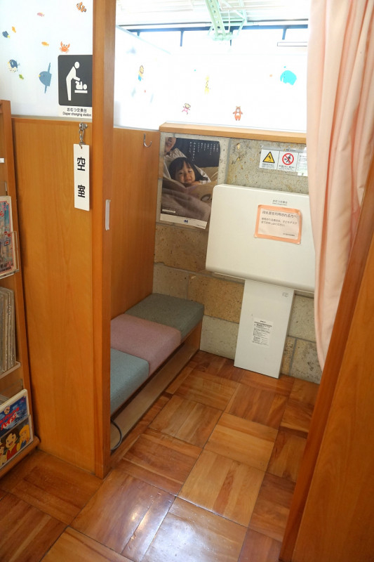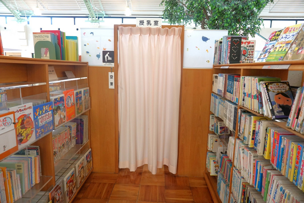 授乳室・おむつ交換台・お子さまトイレは図書館内にあります