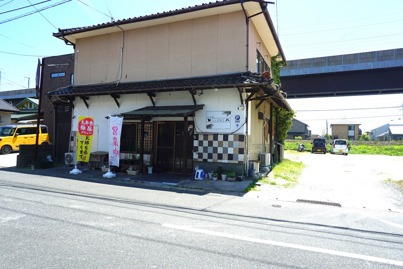 駐車場は店舗裏の砂利スペースにとめてください。