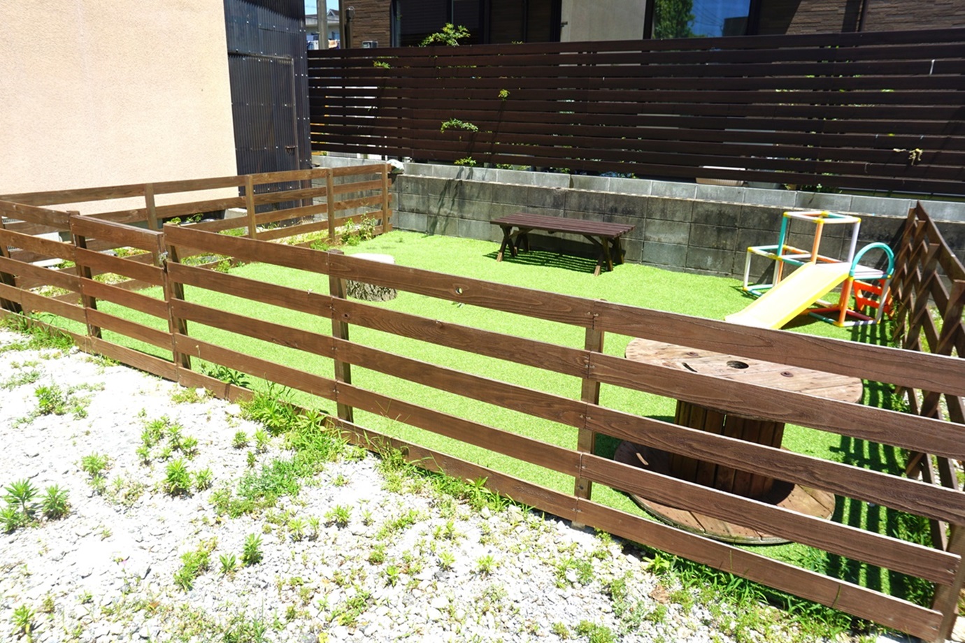 店舗裏には手作りのミニランを用意していますので、お食事後や、お食事注文後お待ちの時間などには愛犬とお楽しみください♪