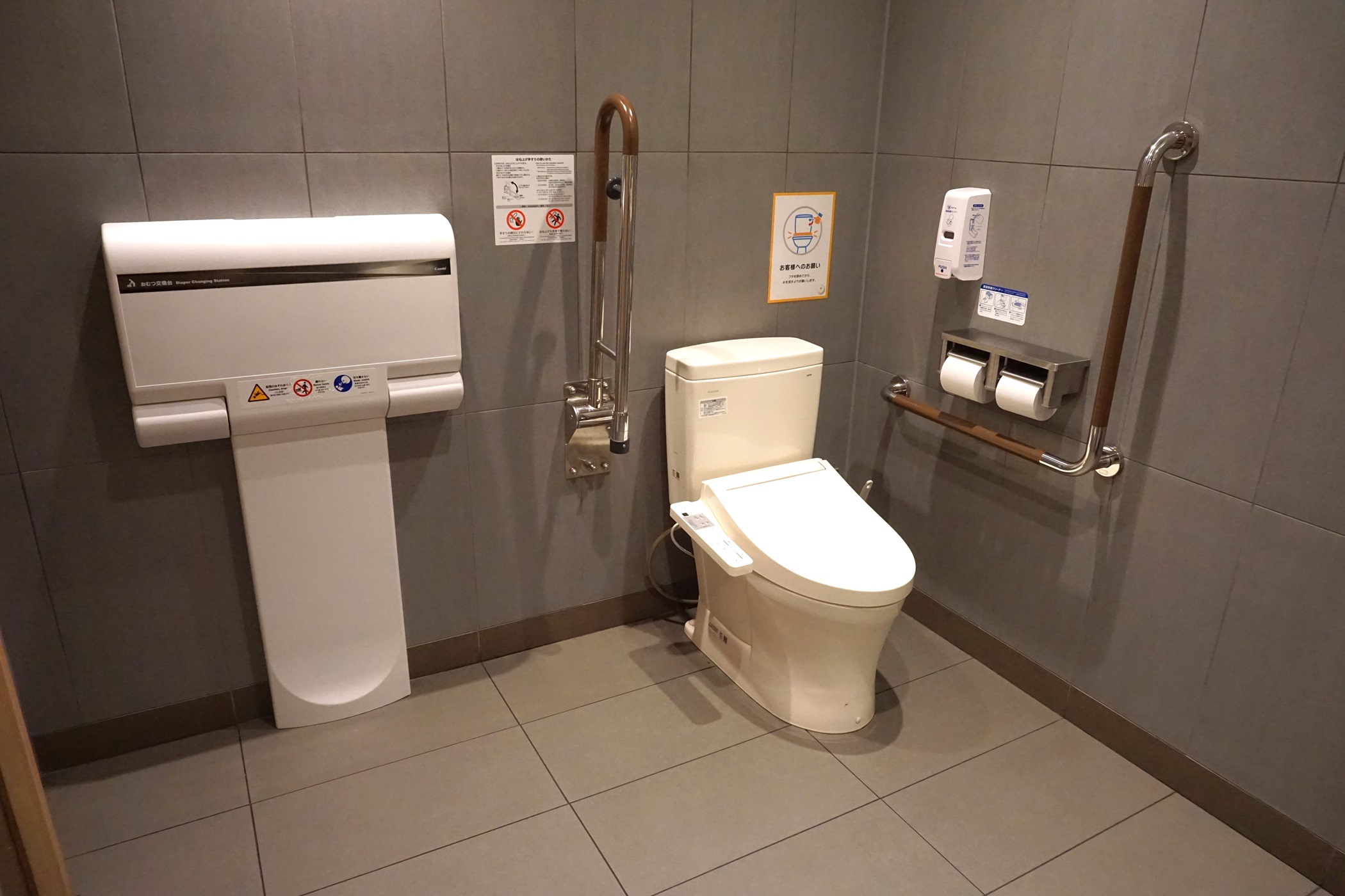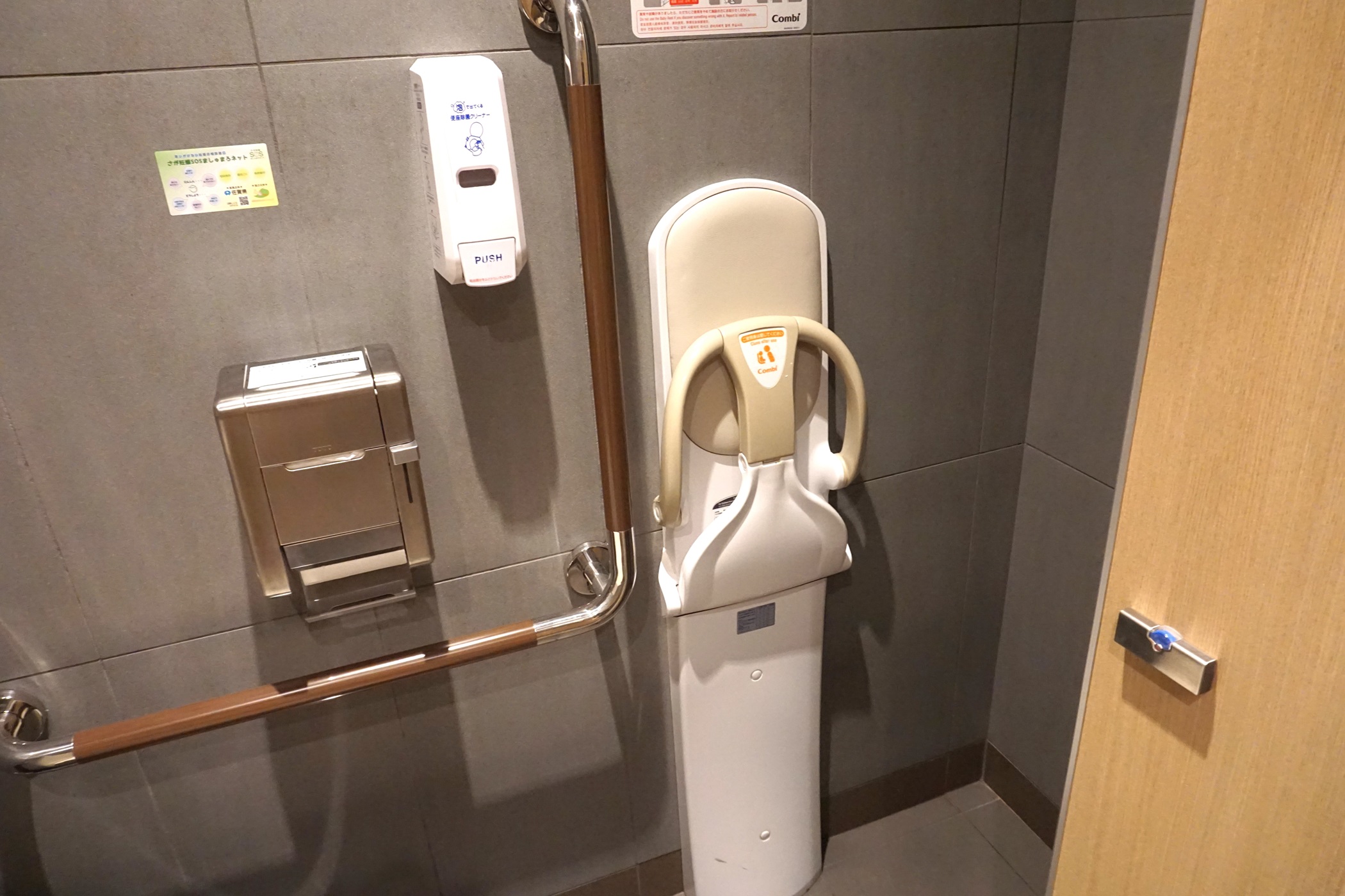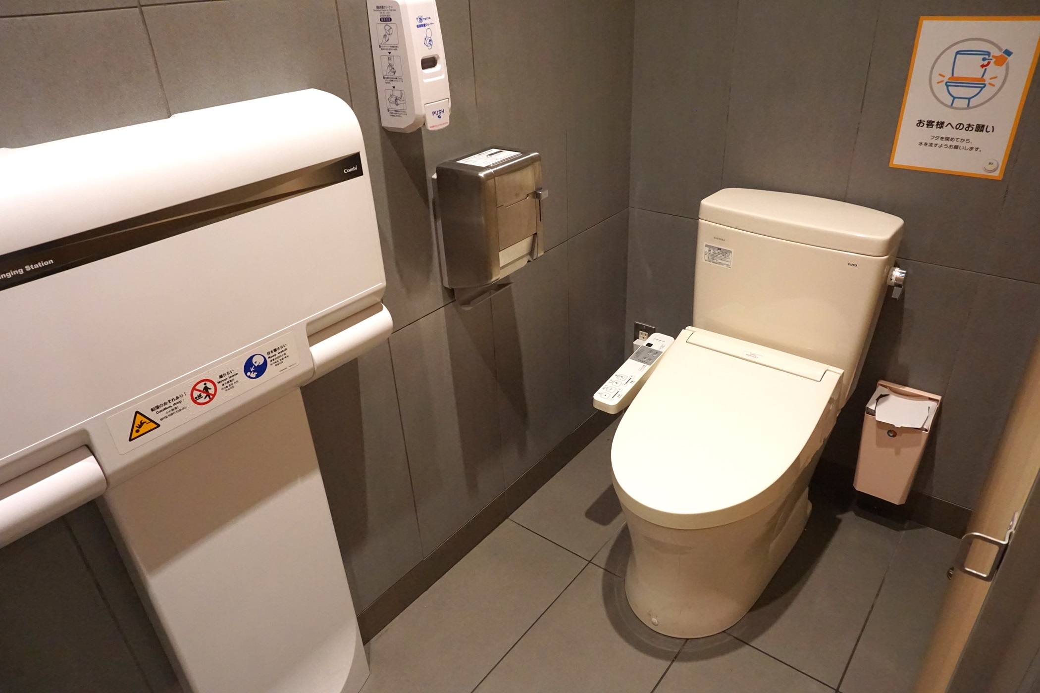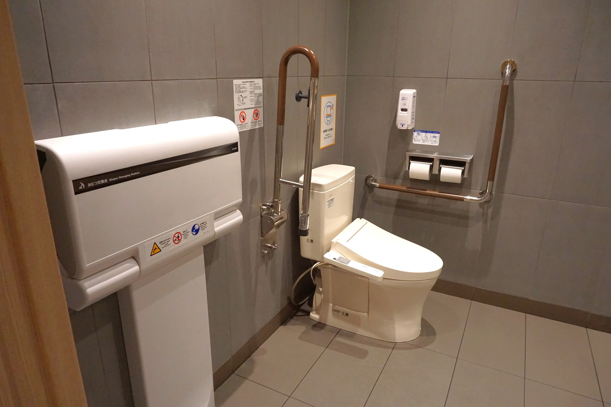 おむつ交換台とベビーキープはバリアフリートイレと女性用トイレ内に設置されています。
