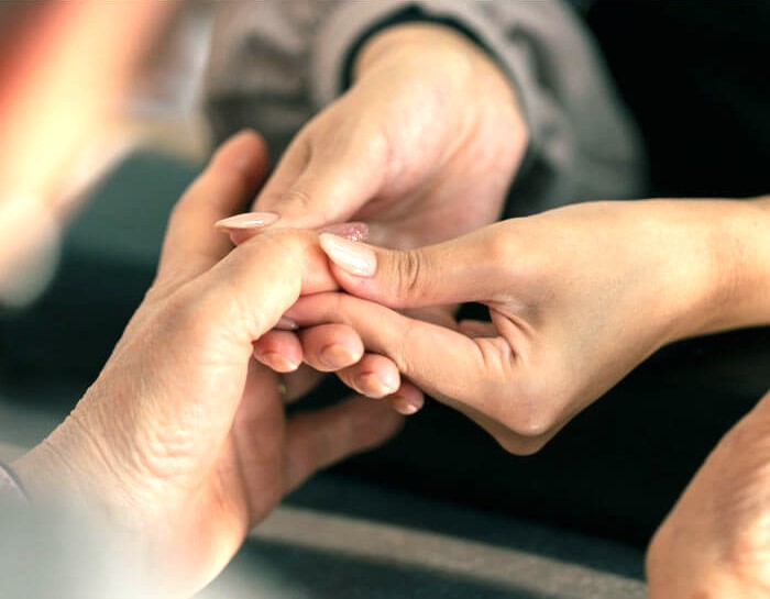 優しく手に触れ、愛のあるコミュニケーションで、みなさまが元気、笑顔になるように。