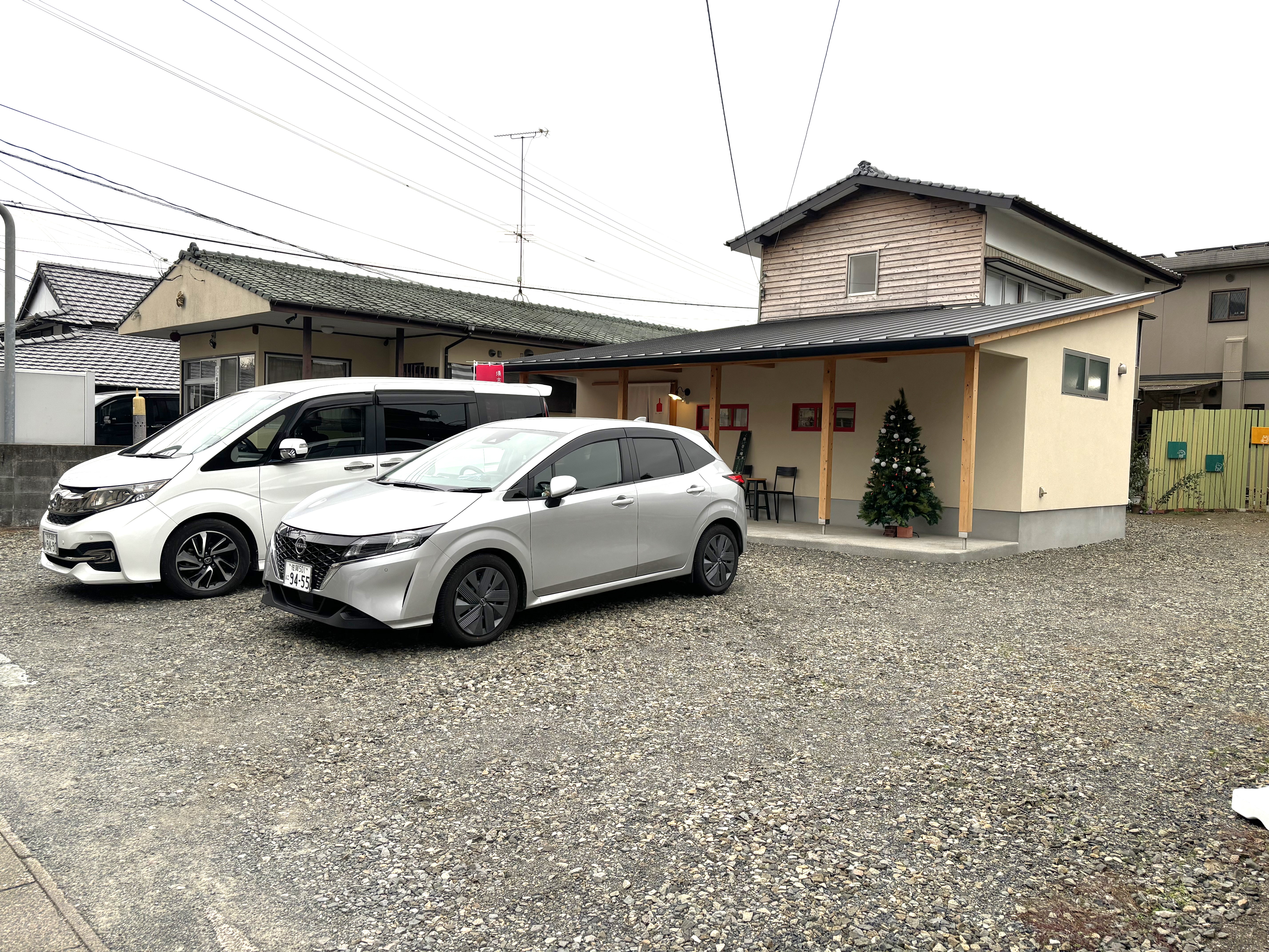 駐車場は敷地内に6台とめれます。店舗前と店舗横に縦列でおとめください。