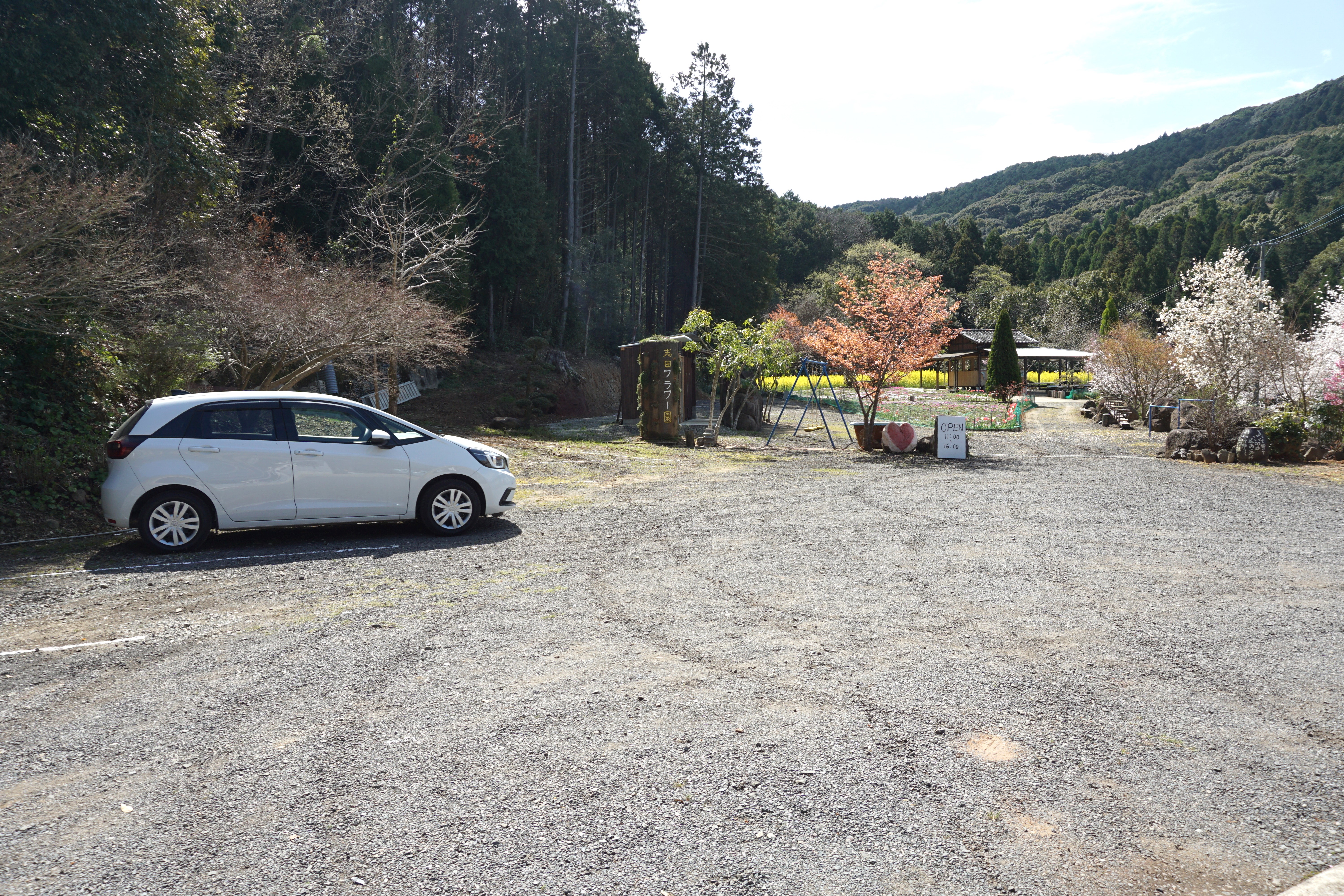 駐車場はフラワー園入口手前と敷地内、徒歩10分ほどのところに2か所あります。