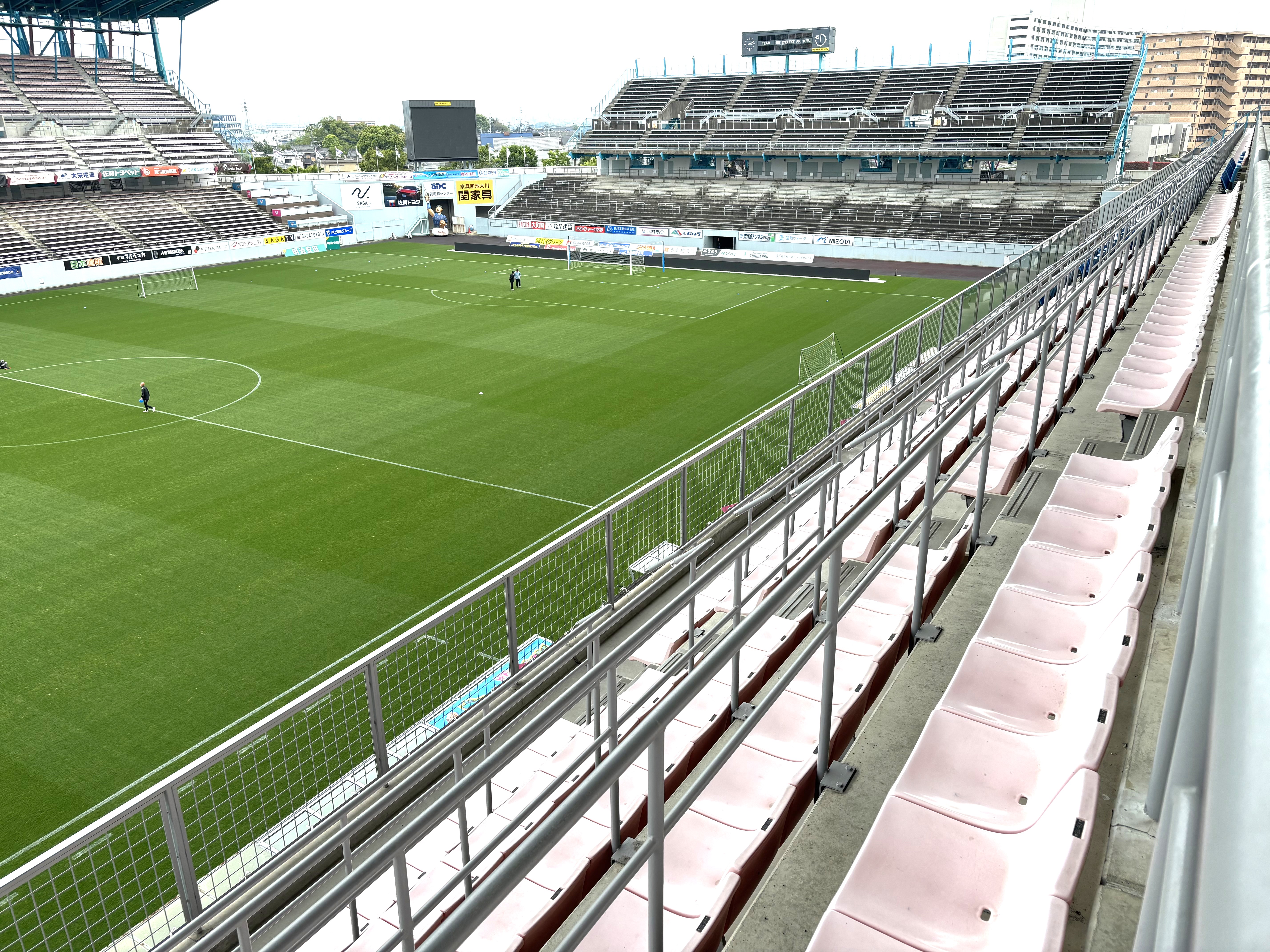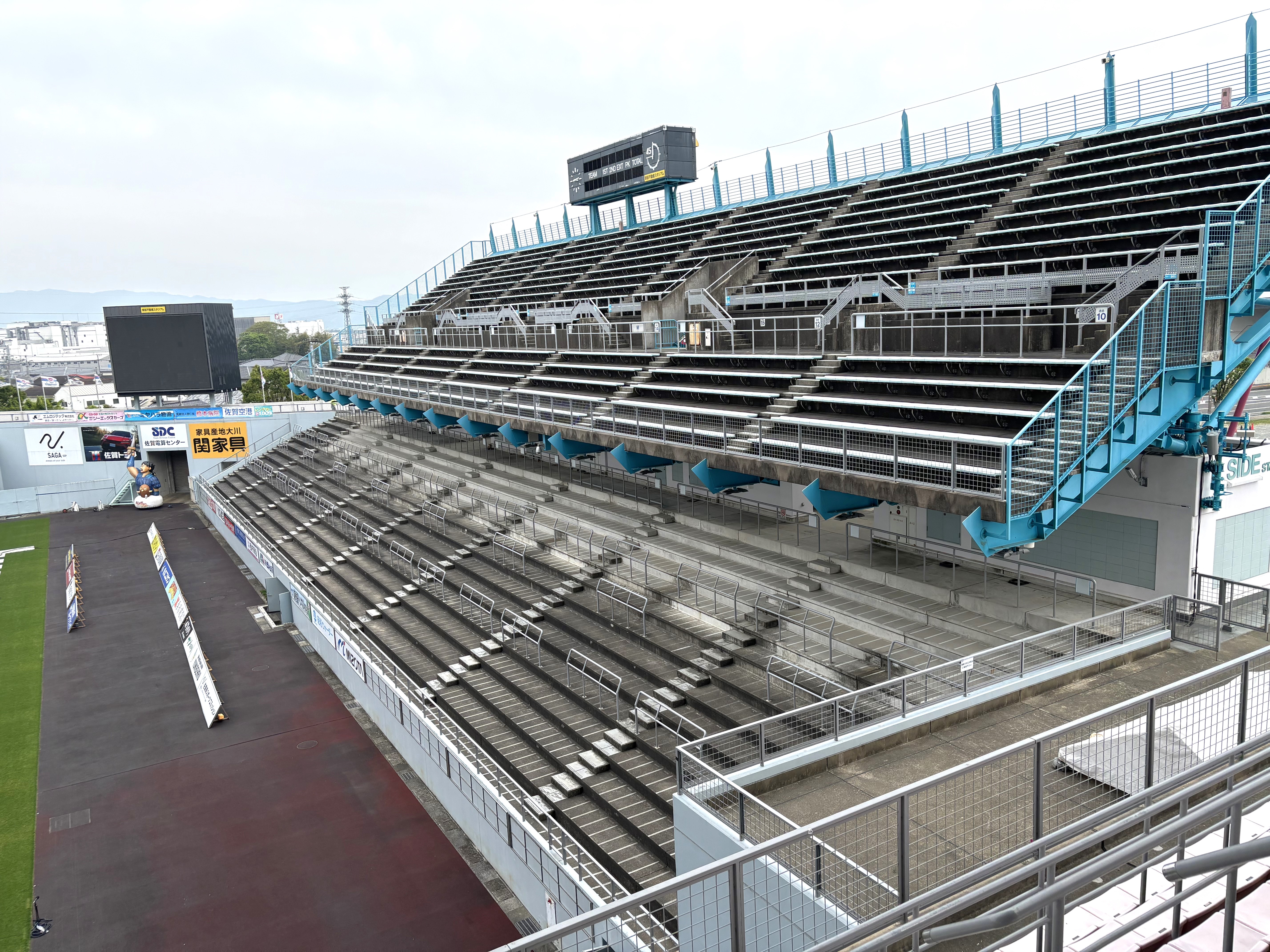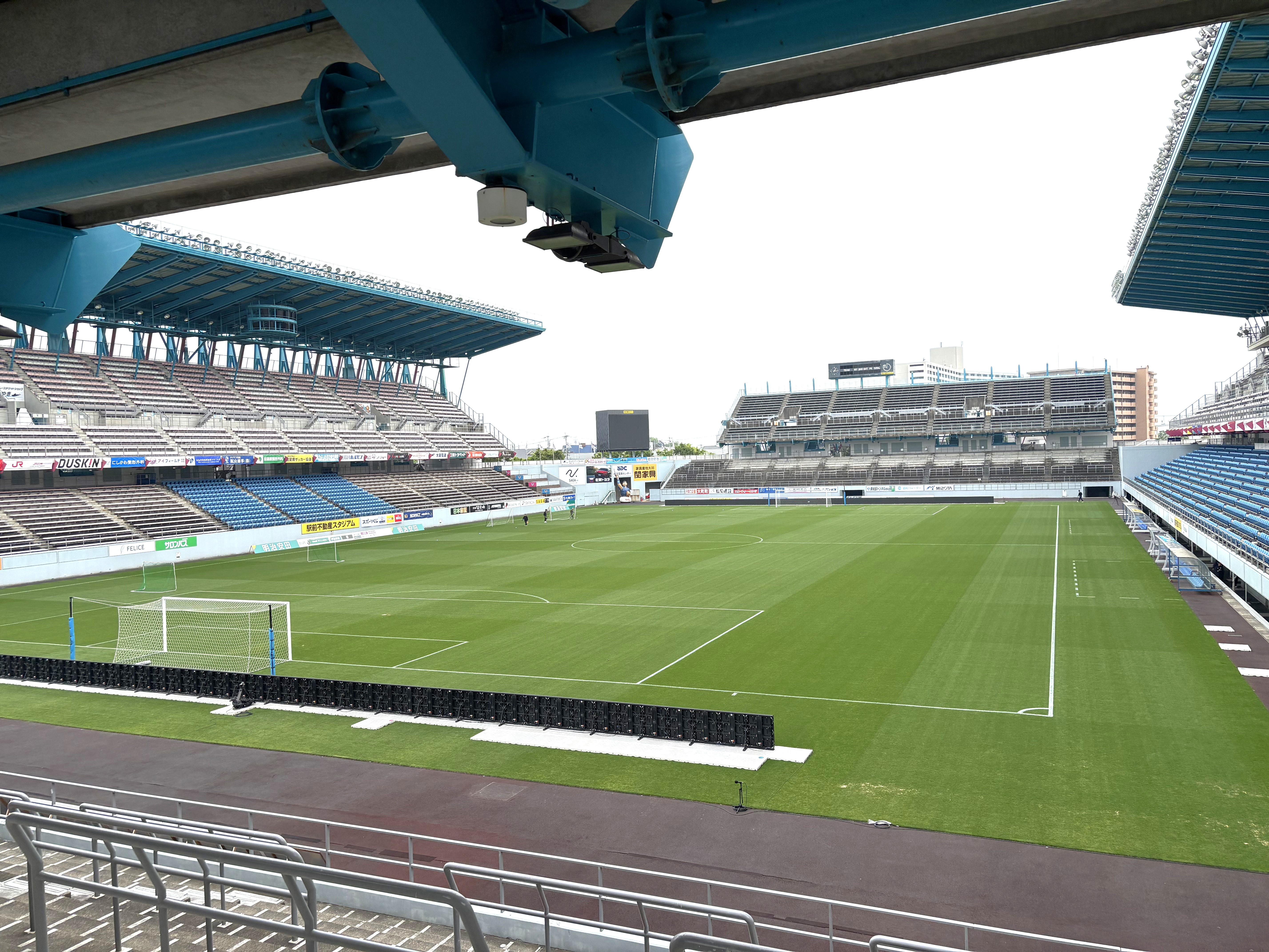 国内最初の純鉄骨造りの観覧スタンドを持ち、足がすくみそうなほど急峻なスタンド(傾斜角度約40度)は選手の息遣いが聞こえそうな程ピッチを近くに感じさせ、どの席からも観戦しやすい構造となっています。
