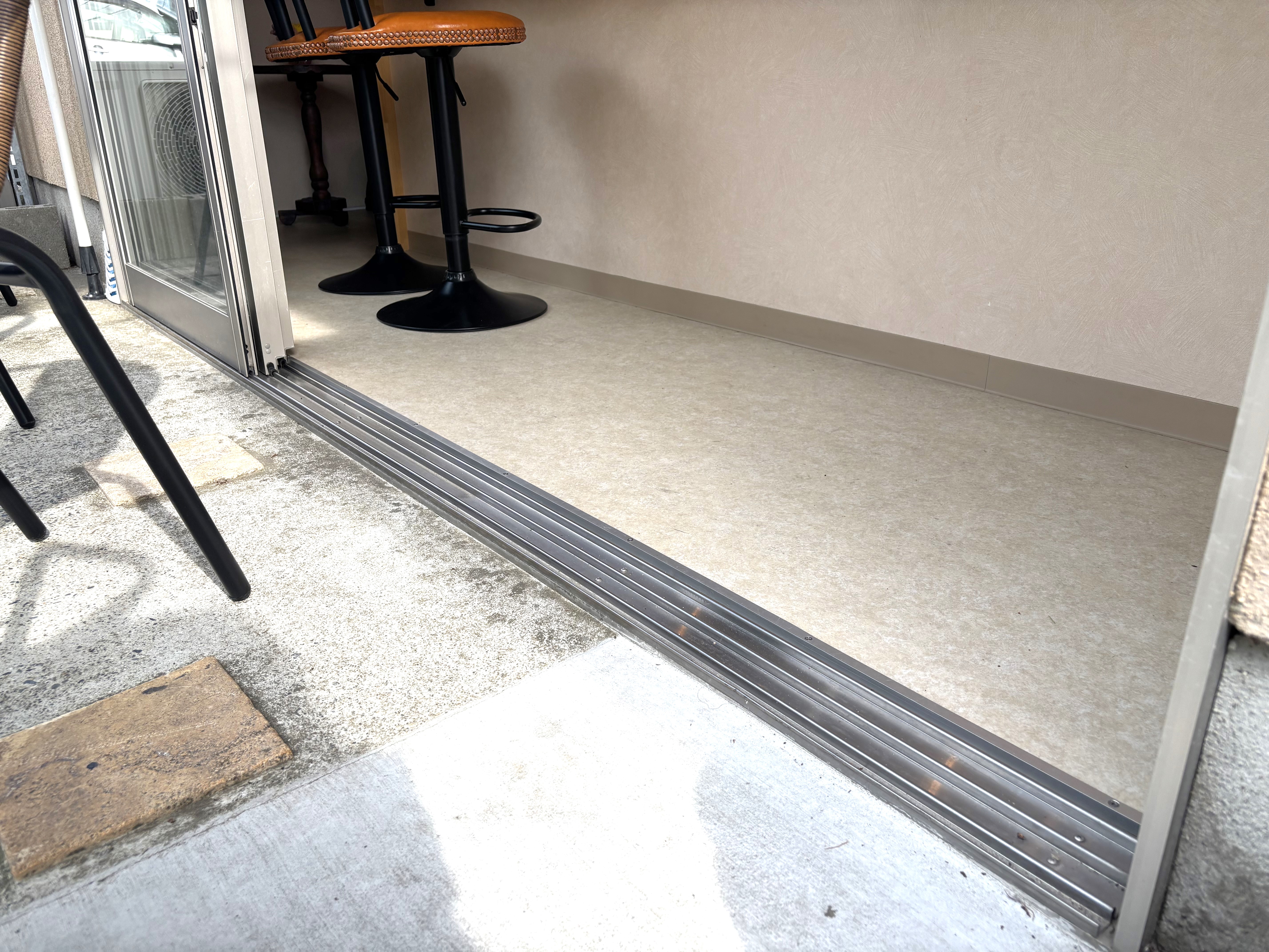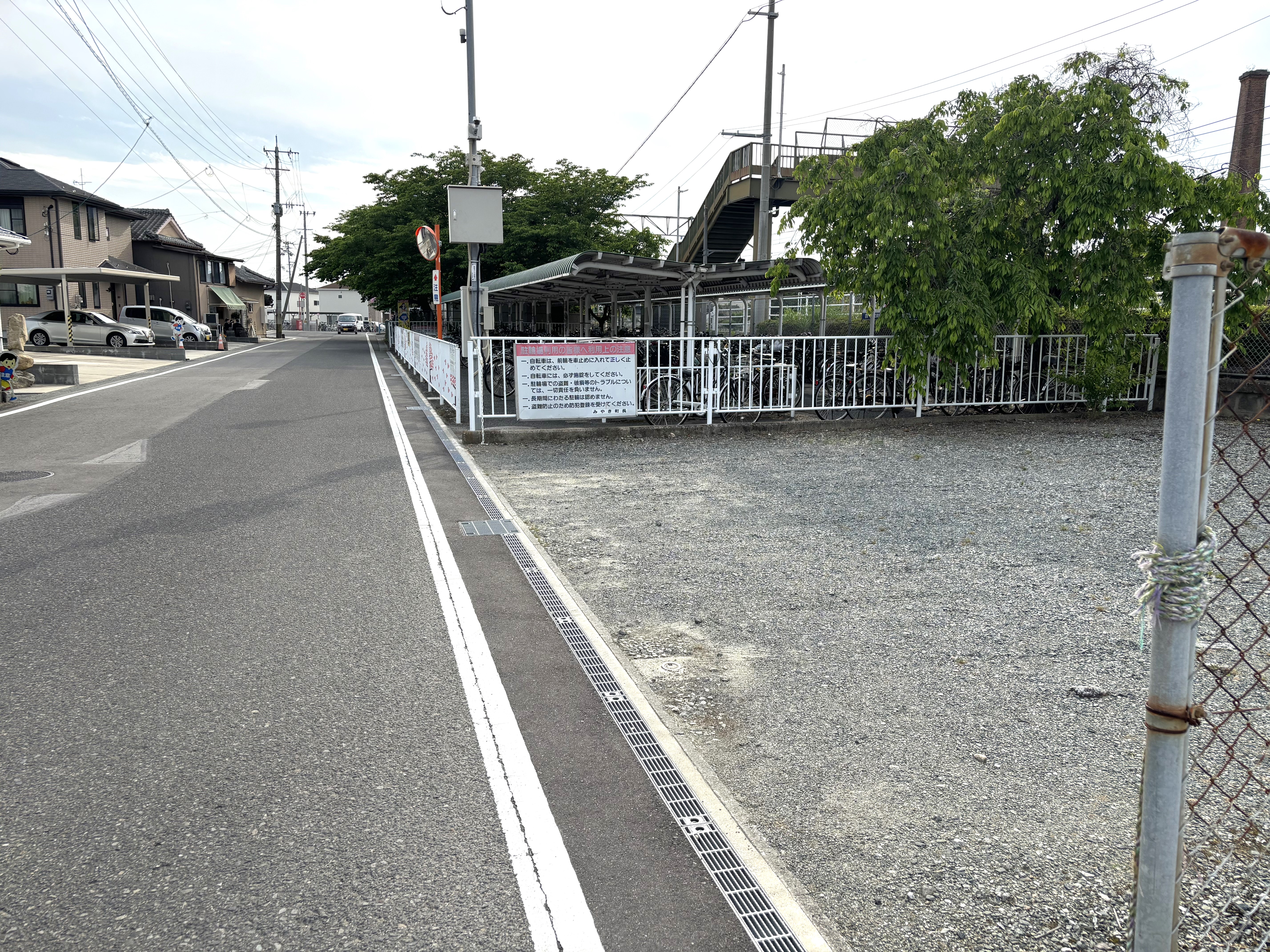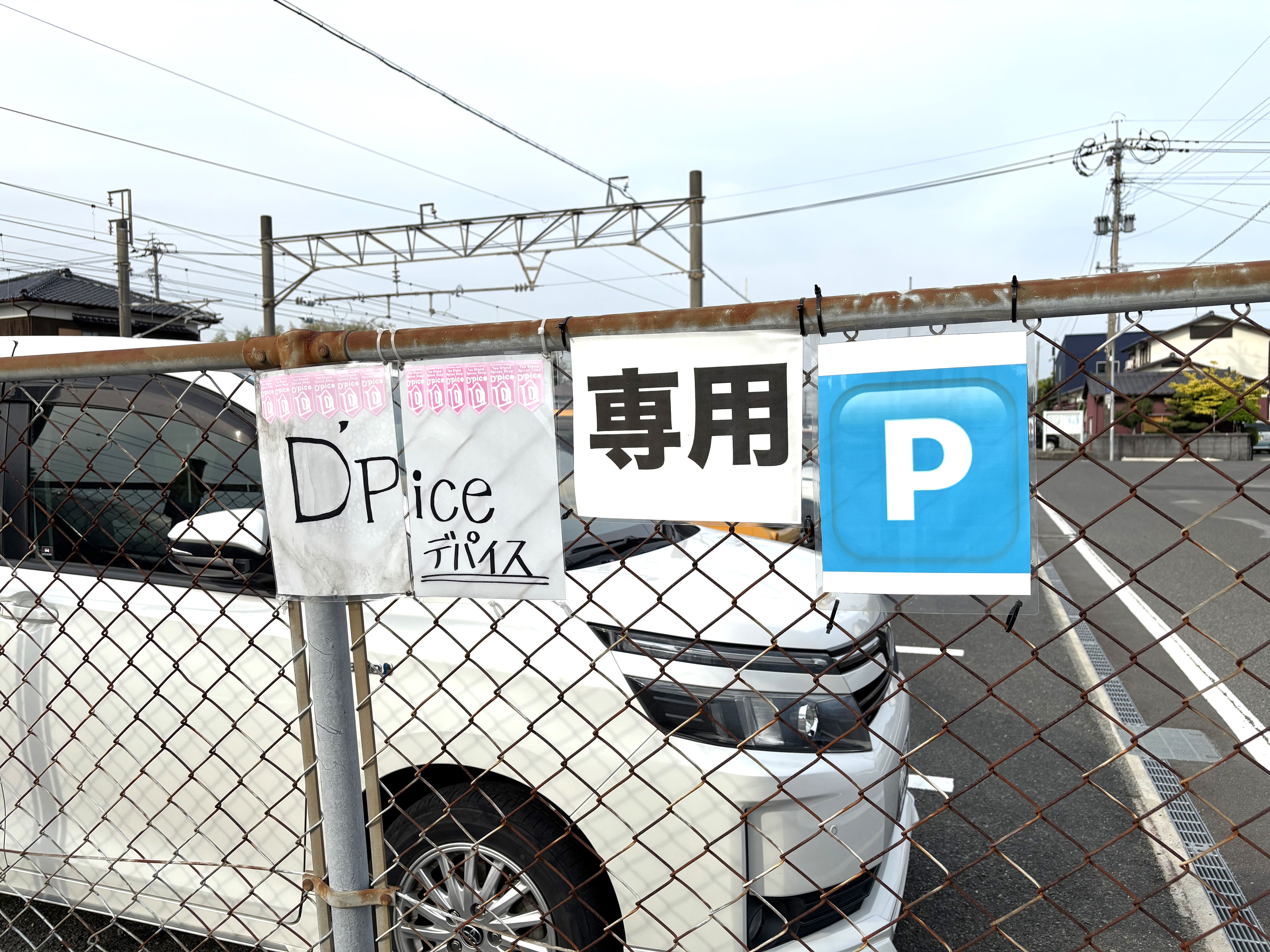 店舗出入口ヨコスペースに軽が1台、砂利スペースに4台停めることができます