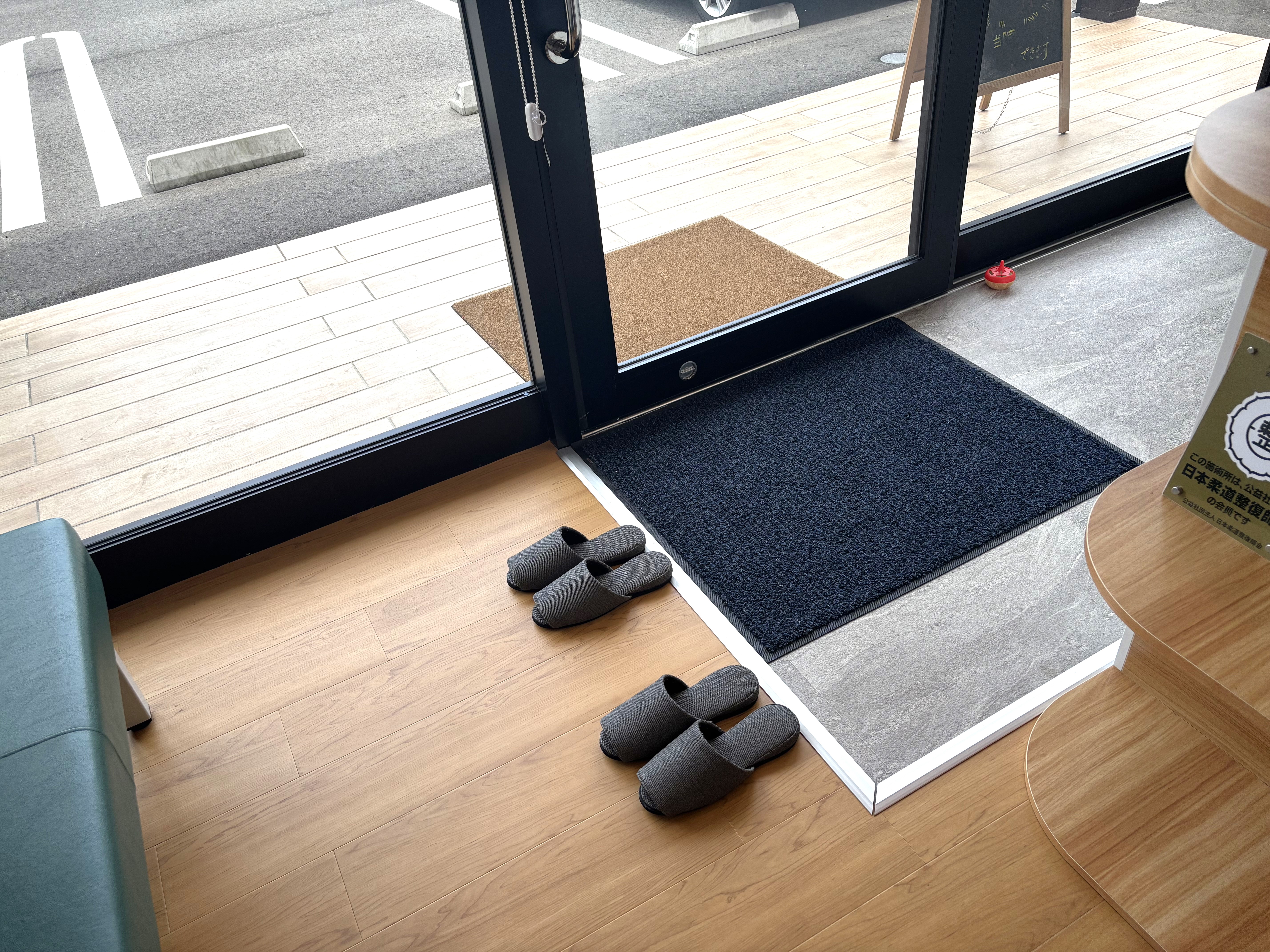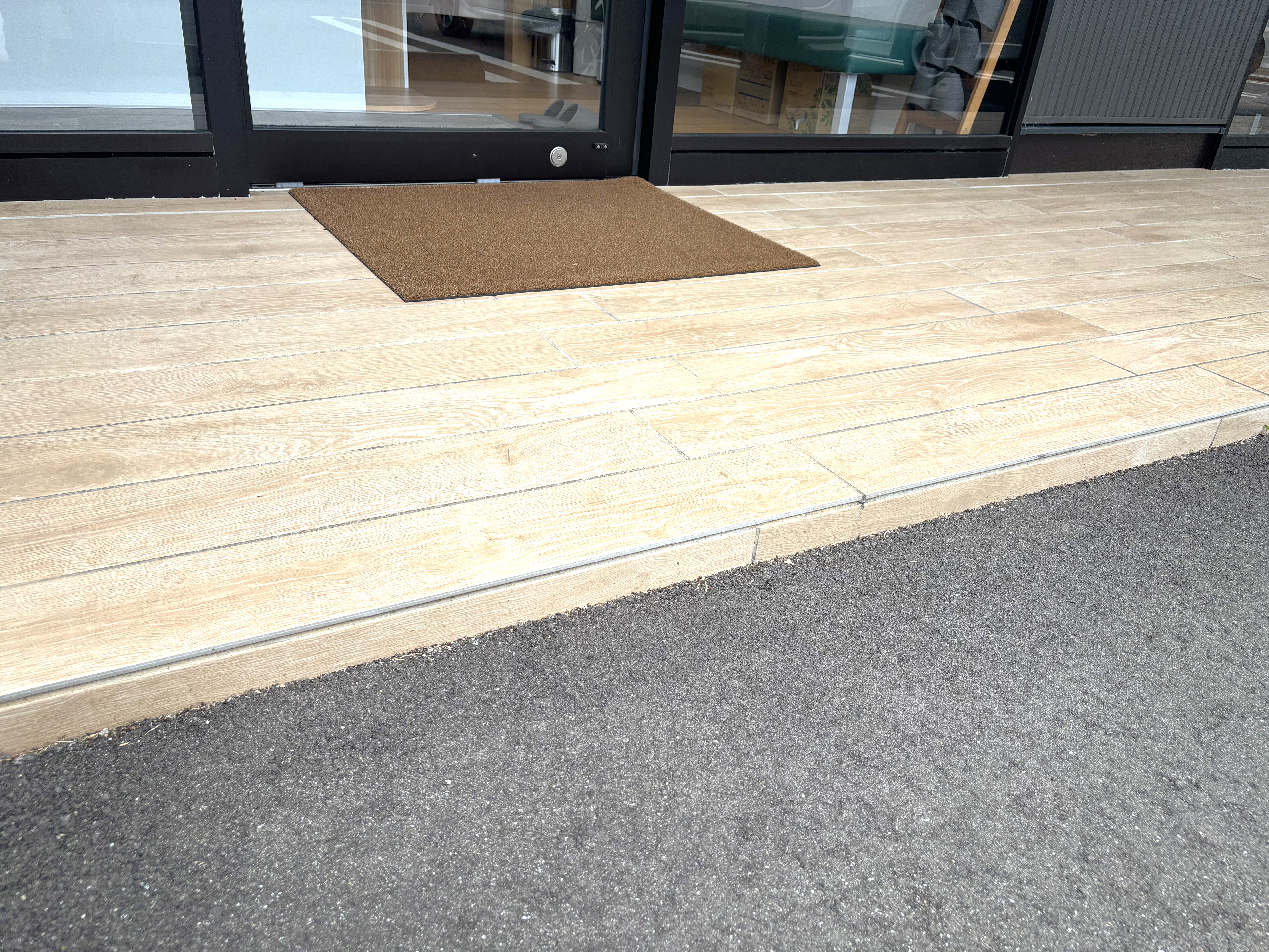 店舗前は段差がありますが、お隣の店舗前から段差なく入店できます