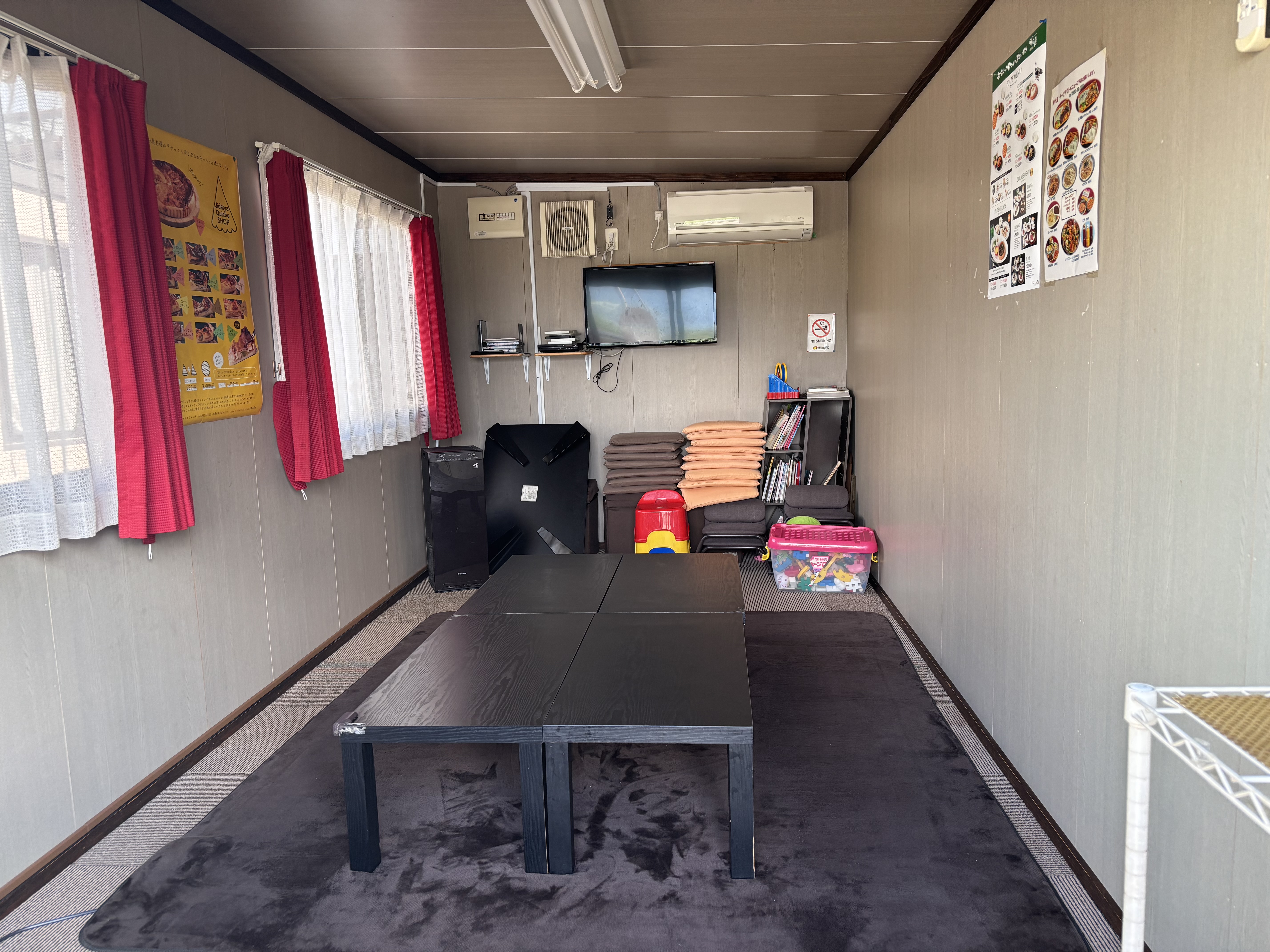 ・店内にキッズスペースはありませんが、敷地内コンテナにおもちゃなどおいてあるファミリールームがあります