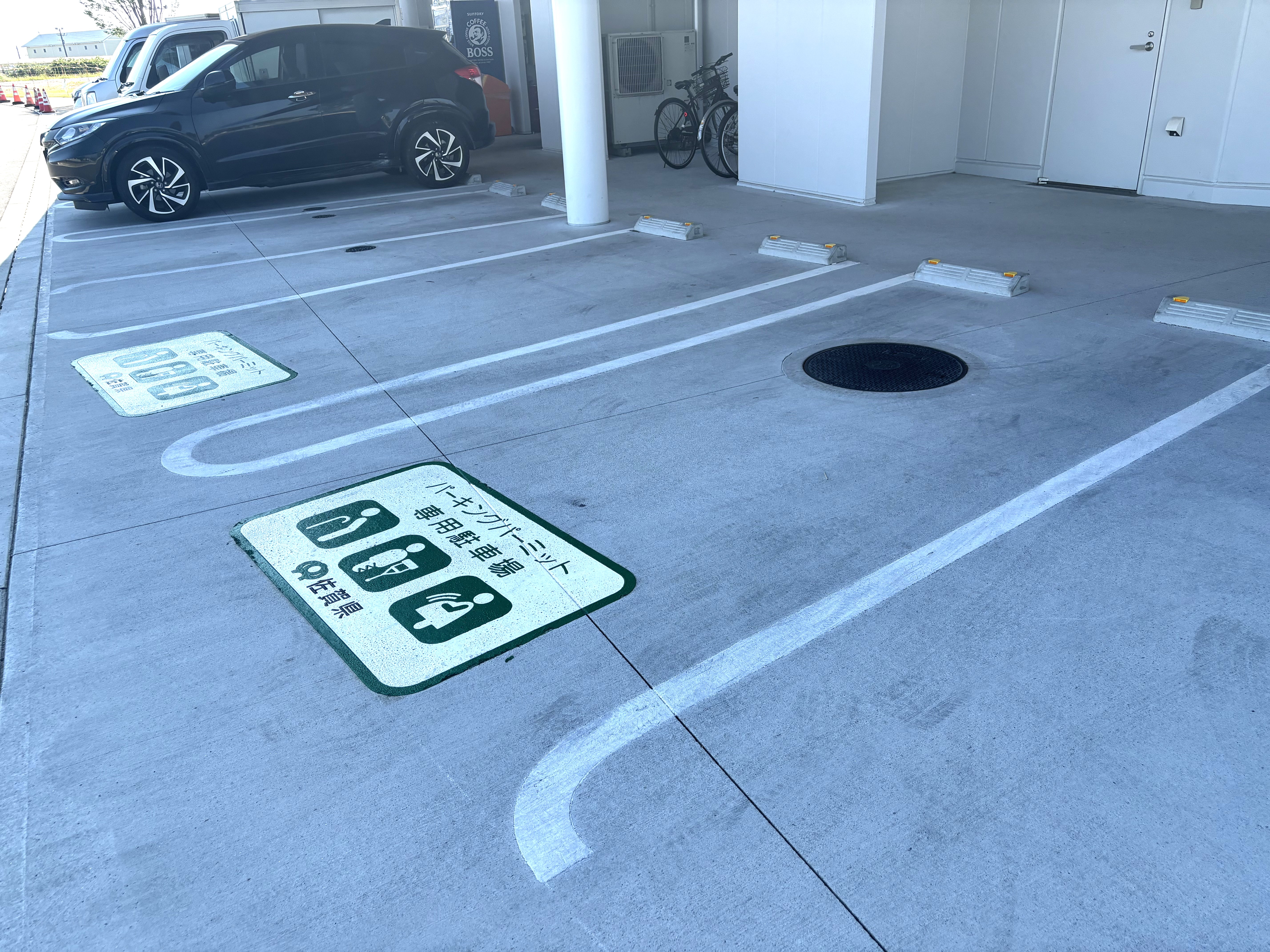 身障者用駐車場は道路から入って左手側の建物横にあります