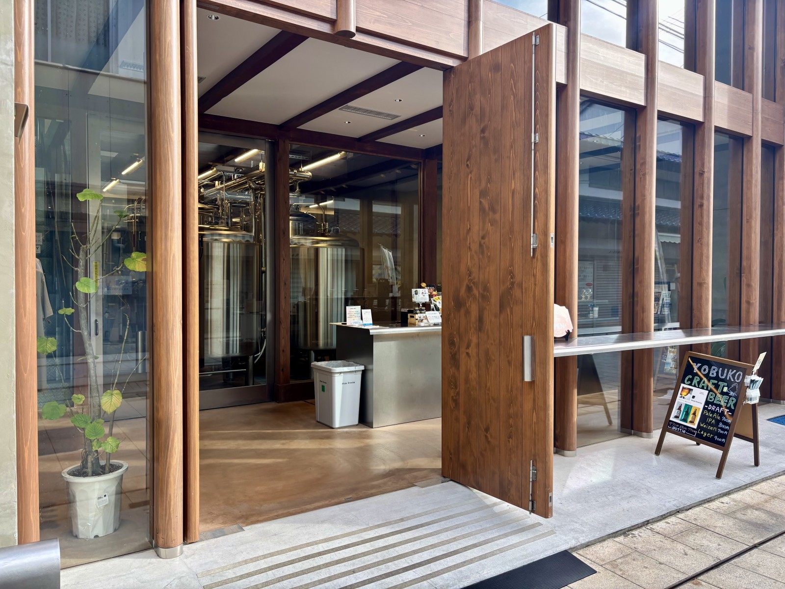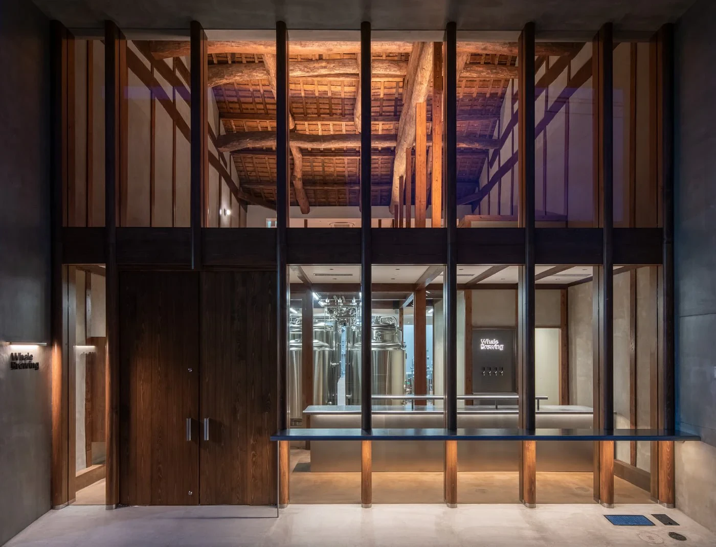 高さ9メートルの大空間と、歴史を感じる力強い梁が迎える店内では、醸造タンクを眺めながら出来立てのクラフトビールを味わっていただけます。
