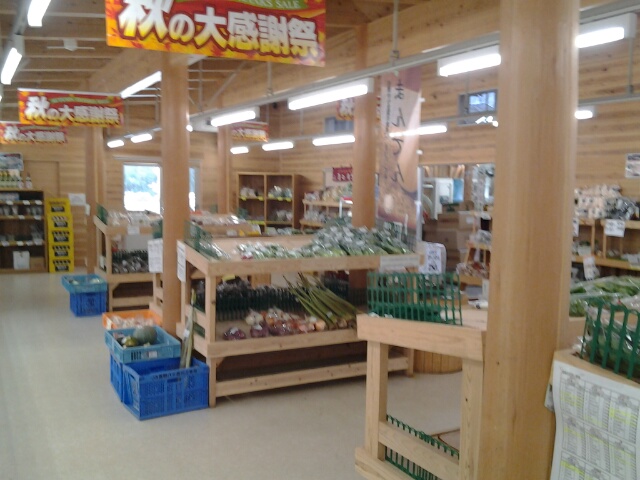 店内は町内の食材をふんだんに使用した温もりある施設季節の野菜と山菜、お米等を販売しています。