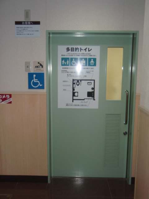 バリアフリートイレには、車いす対応トイレ・ベビーキープ・オムツ交換台・オスメイトがあります。