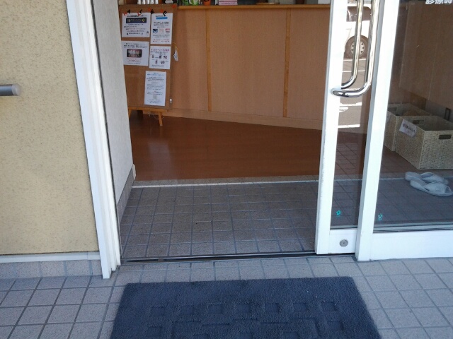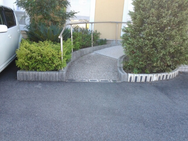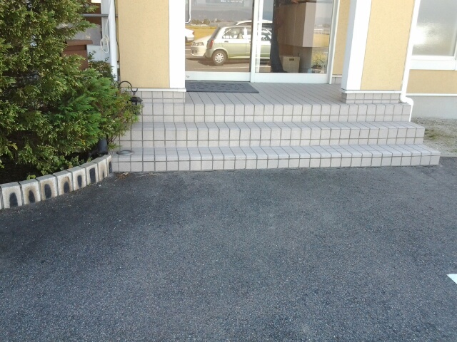 駐車場から出入り口まで3段の階段がありますが、横にスロープがあります。